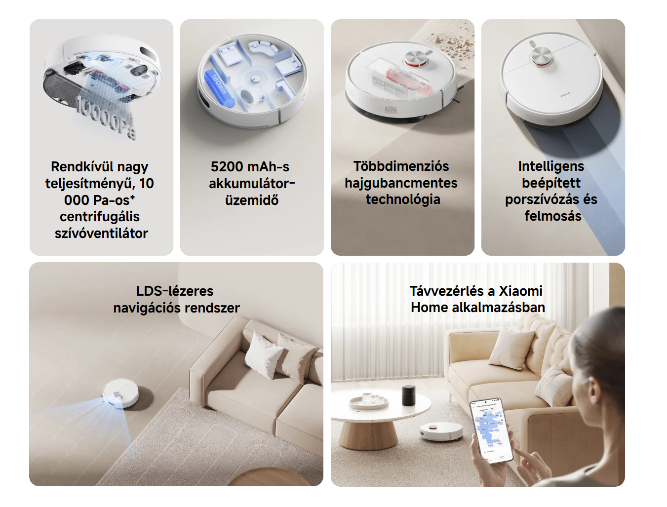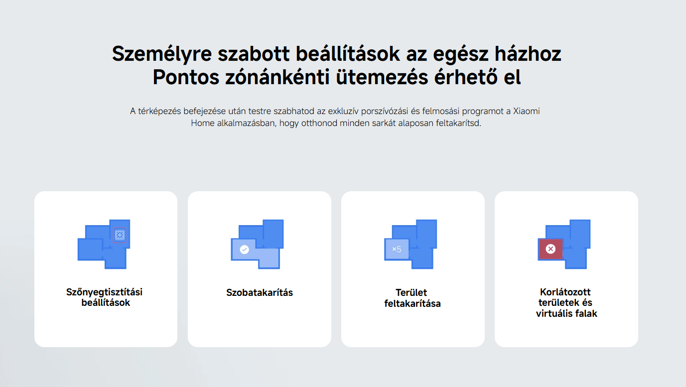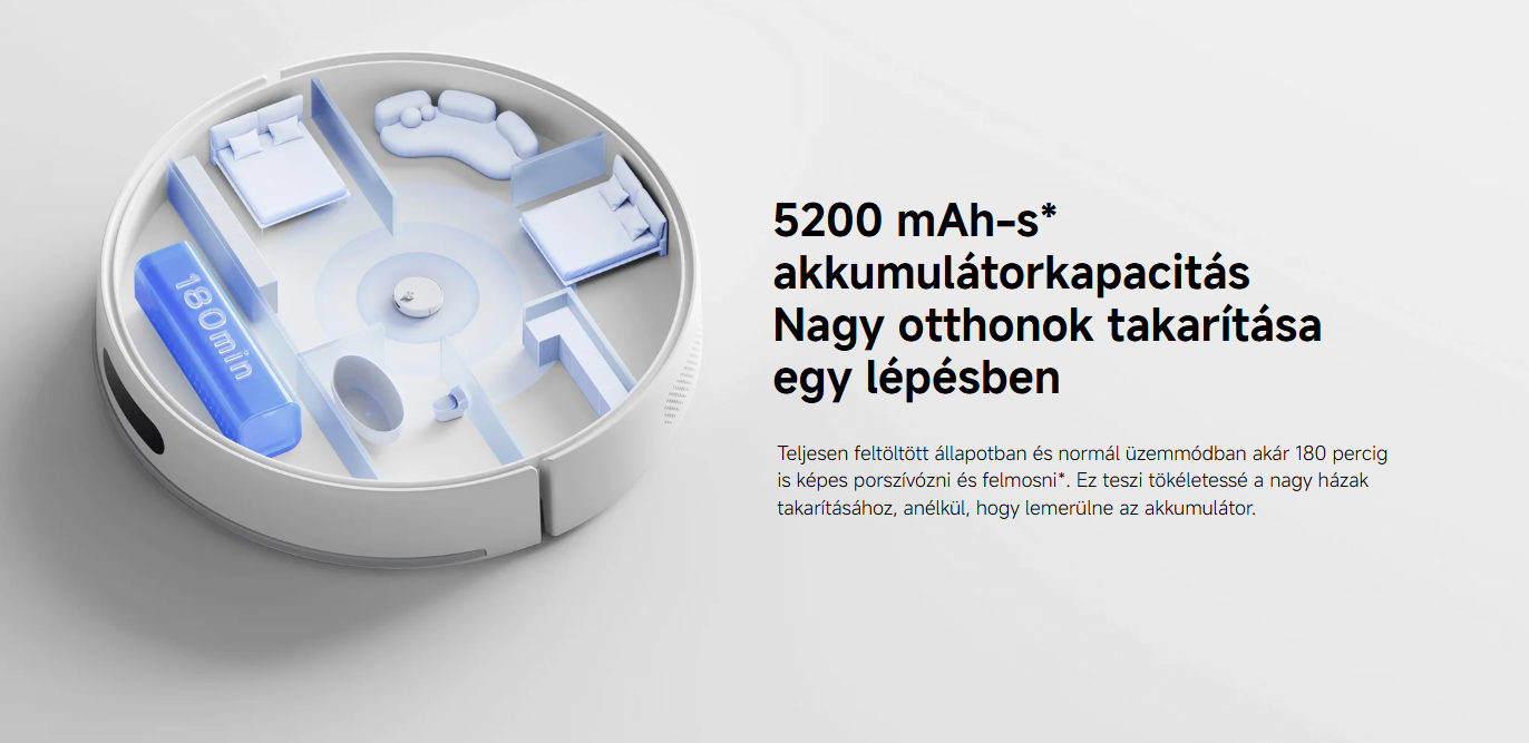| Tartozék(ok) | 1 db robotporszívó 1 db töltődokkoló 1 db oldalkefe (nincs felszerelve) 1 db kefe (előre felszerelve) 1 db felmosópárna és víztartály szerelvény (felszerelt felmosópárnával) 1 db portartály (előre felszerelve) 1 db tápegység 1 db kefeburkolat |